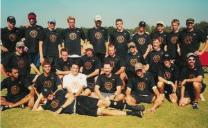 Kneeling (L-R): Alan Hoyle, Rhett Nichols, Dan Olstein, Mike Kelly, Kris Bass, Robbye ‘River’ Brooks, Chris Rodning, Sandy Hartwiger